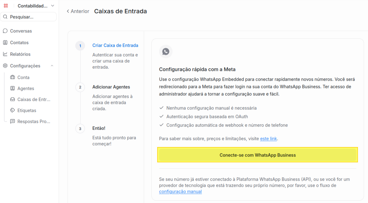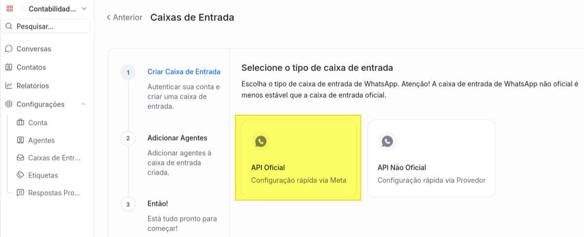 2. Como criar uma caixa de entrada de Whatsapp Oficial?