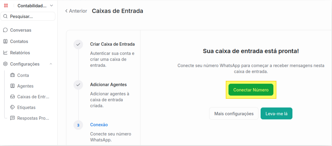 Para conectar um número adicional a sua conta do Confi Chat é necessário a criação de uma nova caixa de entrada.