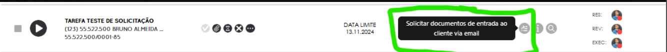 Depois que essa tarefa for gerada lá em (Menu Tarefas > Gerenciar) vai ter habilitado esse botão de "Solicitar Documento de entrada".