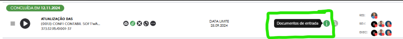 Depois disso esse botão na tarefa de "i" vai conter os documentos que ele importou e quando tiver todos os que você solicitou ok, ele fica verde indicando estar concluído.