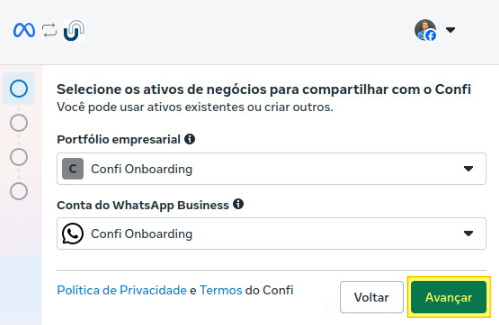 Passo 3: Seleção do Portfólio e Conta Business
