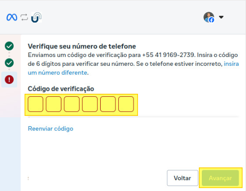 Após a validação, pode ser necessário a realização de mais etapas, siga com os passos instruídos pela Meta até a sua finalização.